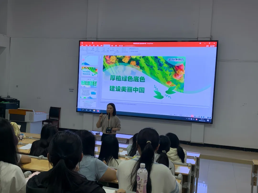 为深入学习贯彻习近平生态文明思想,引导青年学生树立绿色发展理念。2025年3月27日、4月3日、4月10日、4月17日建筑与艺术设计系教学副主任闵娟以“厚植绿色底色,建设美丽中国”为题,分四次为24工程造价1到3班、24数字媒体技术2到3班﹑24环境艺术设计1到2班等16个班级的学生们讲解了兼具思想性与实践性的精彩课程。